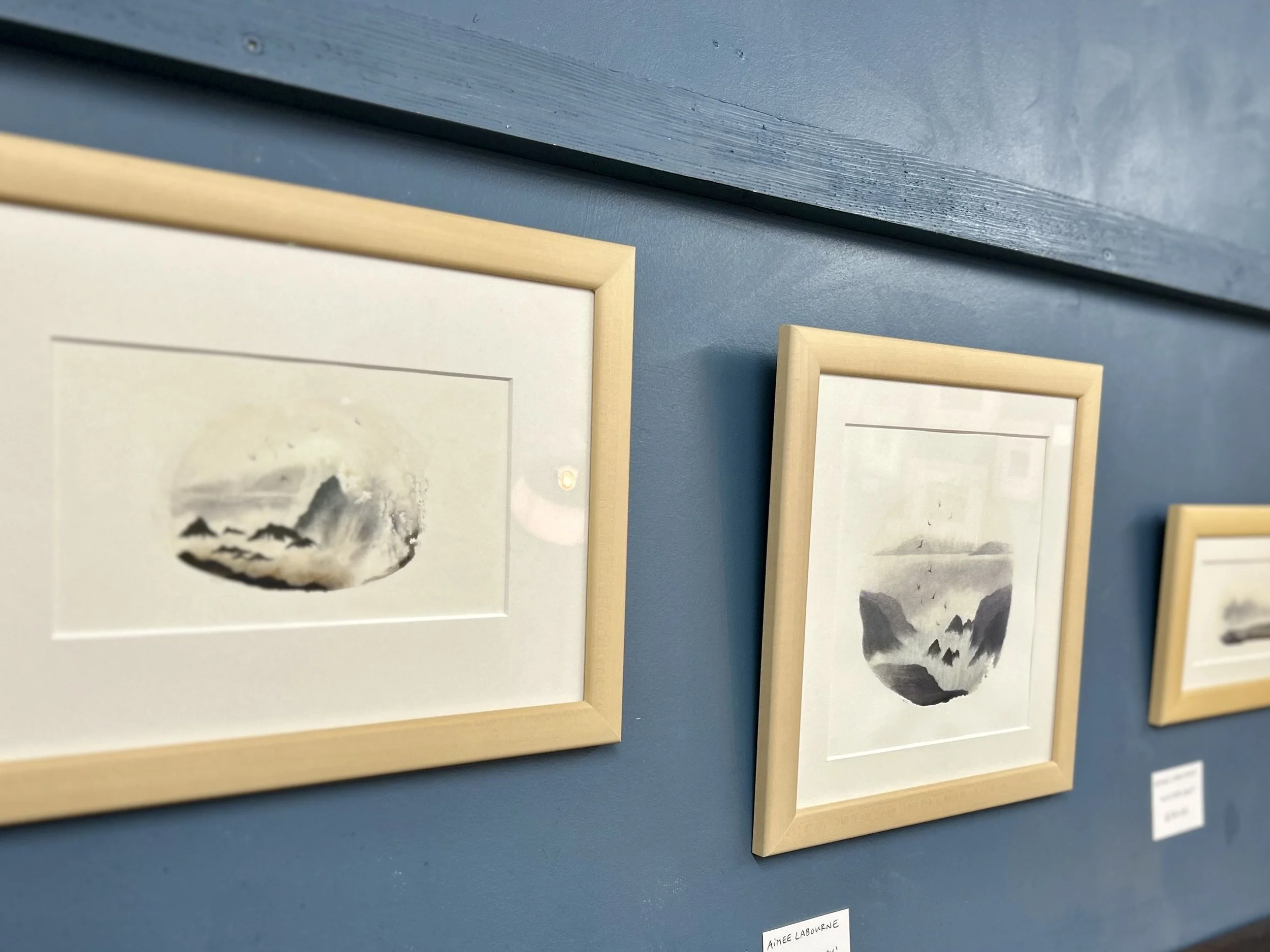 I’m showing three watercolour and pastel pieces. The theme of winter dark inspired thoughts of days with constant change - of wild waves, foreboding light before storms spring up from calmness, and glimpses through grey mist of ethereal light from the winter sun.
